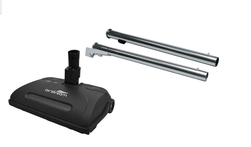 This Power Head is equipped with a non-marking bumper, rubber coated wheels, and an anti-static wooden roller brush. Its ergonomic design offers 5 different height adjustment levels, a swivel neck for easy navigation, and a low profile base that lays flat to clean under all furniture. Includes a circuit breaker for auto shutdown, and a handle quick release.