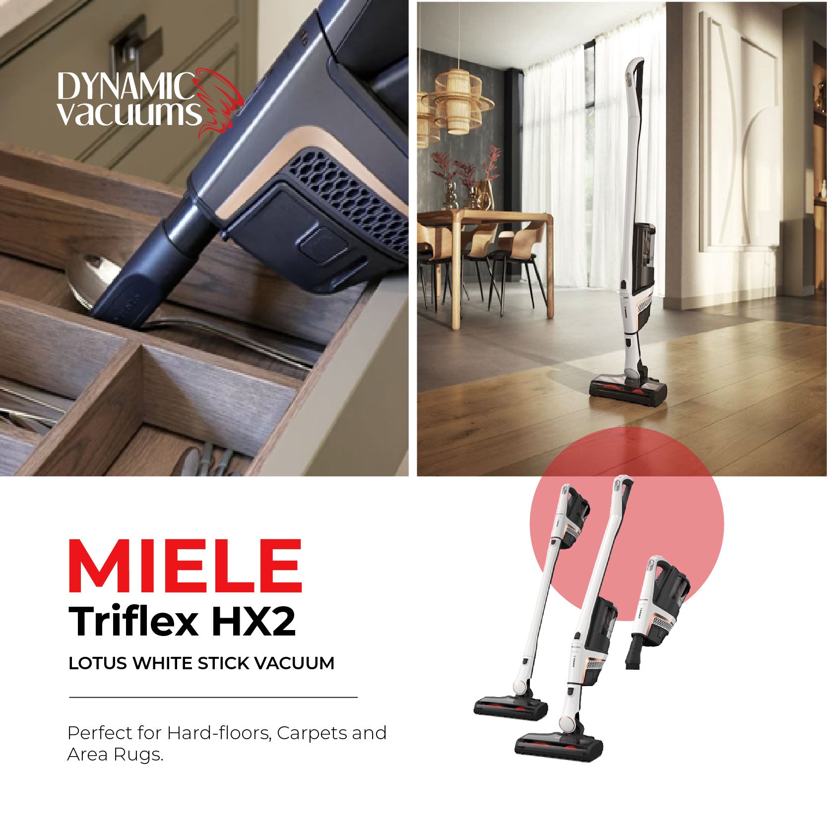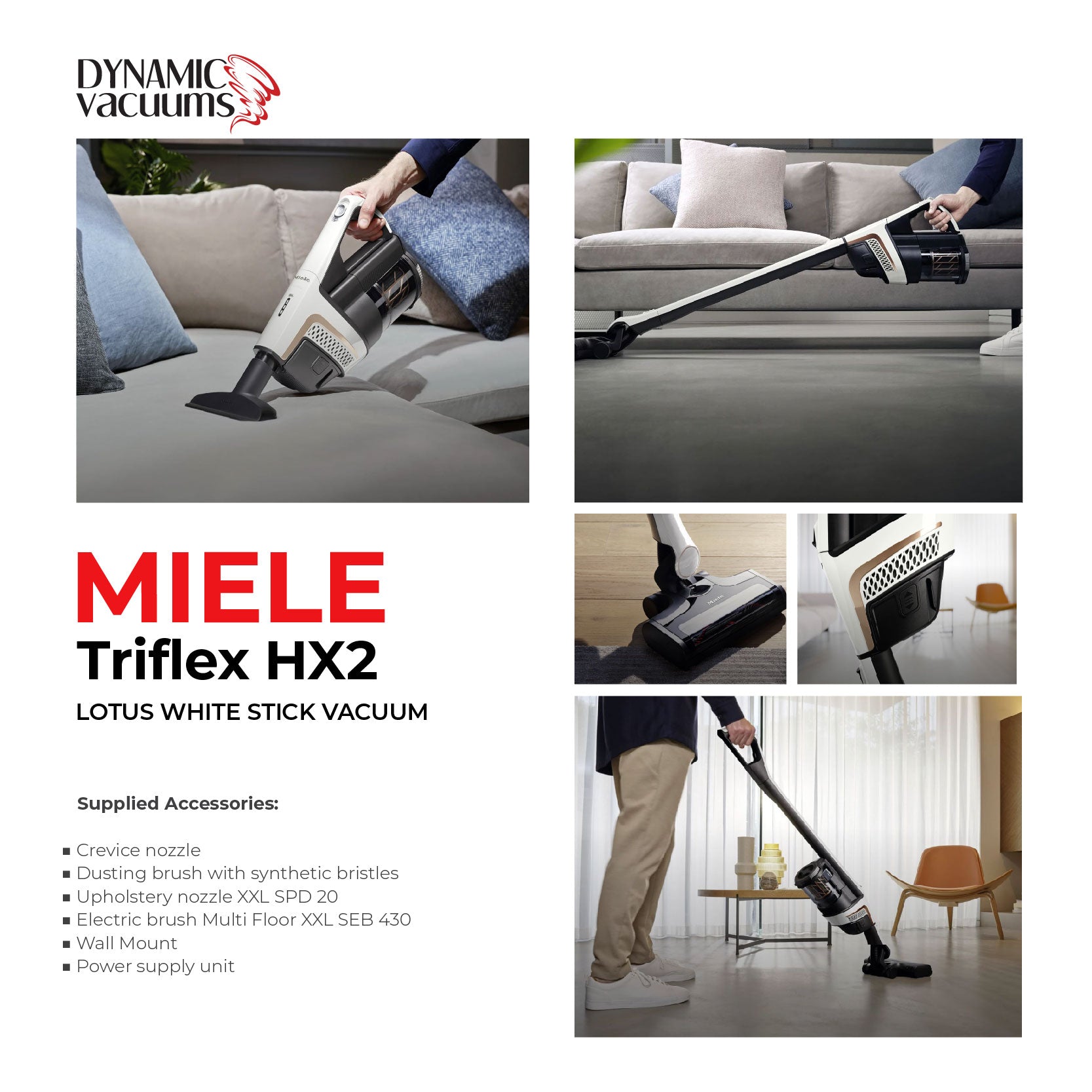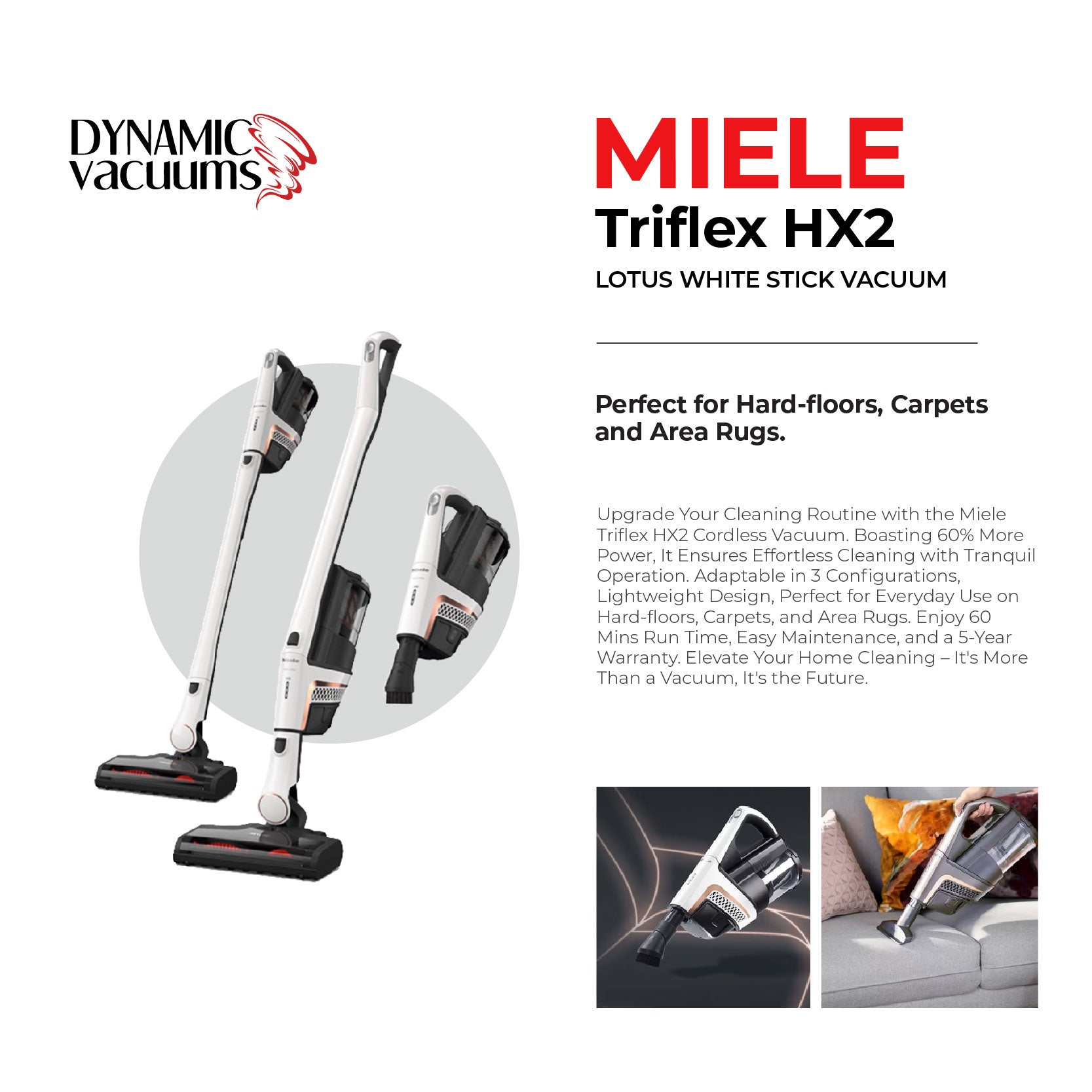 This line of German made, light weight, extreme suction and fast cleaning vacuums are engineered outperform anything we've ever seen before. This model is best suited for homes that need deep cleaning in an instant with the flexibility for above floor cleaning and reaching those hard to get to areas. The 11 inch wide electrobrush is engineered to clean both bare floors and carpet quicker than traditional heads. This reduces the number of strokes it takes to clean the area. This brush is designed for quick yet gentle cleaning so this is best suited for medium to low pile carpeting. The most exciting part of the Triflex line is the 3-in-1 versatility and ease of use. You are in control of the three ways it can be configured. First is just using it as a handheld vacuum for above floor cleaning. Next is with the unit in your hand with the wand at the base for a longer reach under low furniture. The third and most popular is with the unit connected to the electrobrush and wand connected to the handle. This configuration makes it lighter to push around for long periods of time. No other vacuum gives you the flexibility of the Miele Triflex. The battery can disconnect allowing you to swap out with a second and place it on charge instead of the entire vacuum. Miele warranty is valid across Canada from any authorized Miele service center. Key Features:- Made in Germany