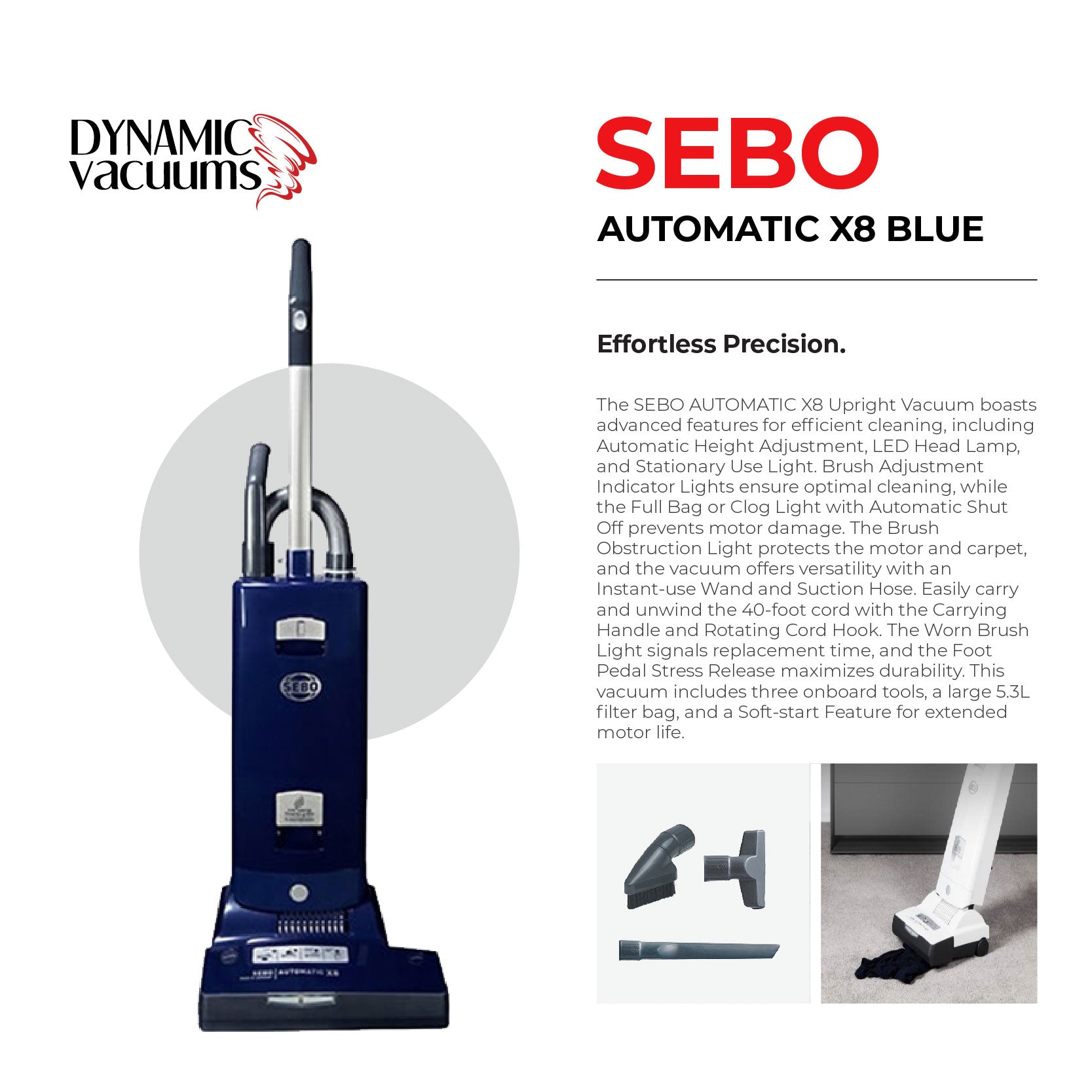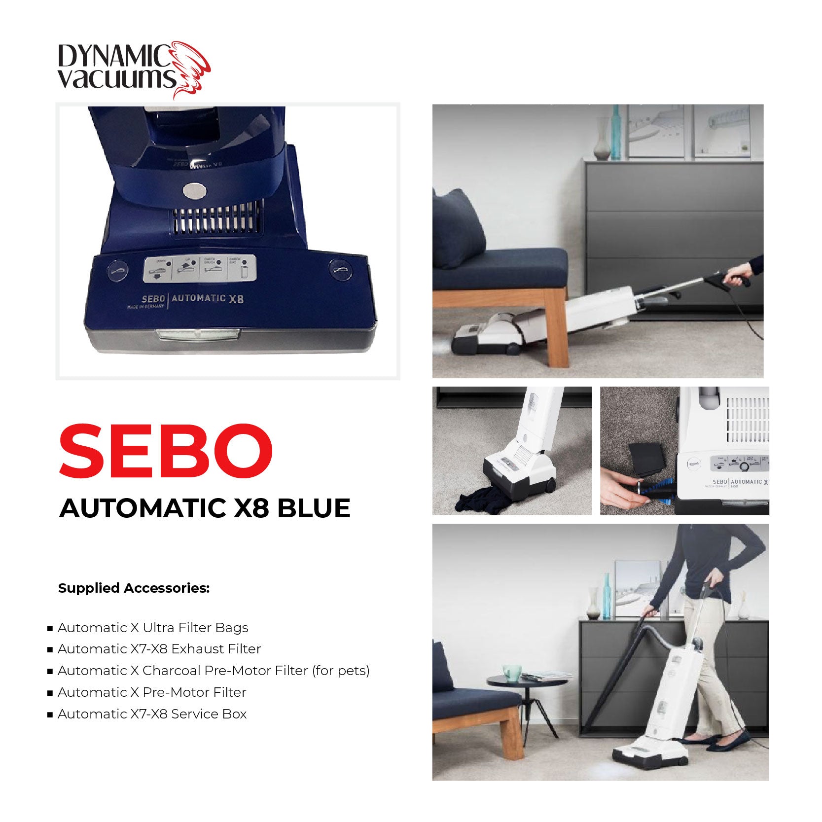 The 12” X7 and X7 Premium, as well as the 15” X8 all feature truly automatic height adjustment so you always know your brush is set to the perfect height for your carpet or hard floor. Feeling ambitious? Press the Boost Button on the X7 Premium and the spinning brush will lower itself to do more intense brushing. It also features a head lamp to help you see dirt and dust more easily as you vacuum. No need to guess about clogging, worn brushes or full bags either – AUTOMATIC X vacuums alert you when these things happen, making vacuum maintenance easy as pie. Our special X7 Premium Pet was made for homes with dogs and cats in mind. It features an included extension hose, hand-held turbo brush and comes equipped with a charcoal filter to cut down on odours from vacuuming pet hair and dander. Features: